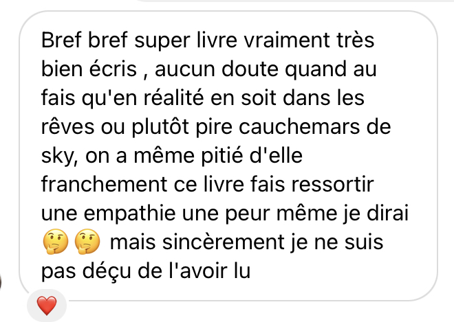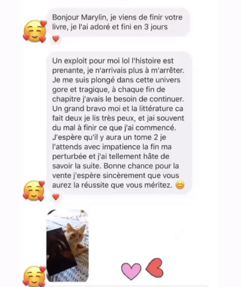 Sinon je suis quelqu’un qui ne peut pas se contenter d’un seul projet, c’est pourquoi j’ai encore beaucoup de roman sur le feu et que je donnerai tout pour les publiés ! Mais bon je vous en parlerai un peu plus en temps et en heure.